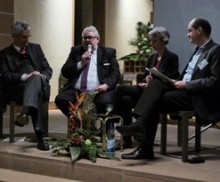 Unter der Moderation von Gesine Kauffmann, Redakteurin bei welt-sichten, diskutierten danach Dr. Sven Matthiesen, Leiter Vorstansstab/Kommunikation der Sparkasse Frankfurt, und Arnd Erler, Teamleiter Privatkunden Frankfurt der Evangelischen Bank angeregt über das Selbstverständnis der drei vertretenden Institute und ihre Angebote für Kunden und Gesellschaft.
