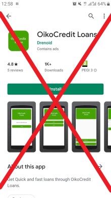 Oikocredit möchte seine Partner, Anleger*innen sowie die Öffentlichkeit auf die Betrugs-App OikoCredit Loans aufmerksam machen. Die App ist im Google Play Store beim Entwickler Drenoid erhältlich.